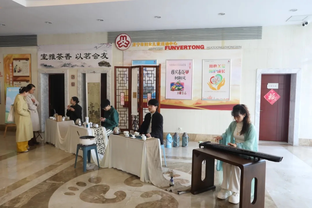 人间最美三月天,春花烂漫展新颜。为庆祝第115个“三八”国际劳动妇女节,3月8日,济宁市妇女儿童活动中心开展了“遇见花开·绽放她力量”妇女节主题活动。活动设置了文艺汇演、艺术画展、茶艺体验、创意绘画等丰富多彩的环节,为女神们带来了一场视觉、听觉与心灵的多重盛宴。 “三八”妇女节文艺汇演 展现女性魅力与风采此次文艺汇演节目类型丰富多样。舞台上,太极表演的一招一式尽显表演者的沉稳与力量,刚柔并济间诠释着传统武术的魅力。模特走秀环节,女模特们身着华服,步伐优雅,展现优美身姿,传递出乐观向上的精神风貌。古琴茶艺表演中,悠扬的古琴声萦绕耳畔,茶艺师们手法娴熟,展示传统茶艺的精妙,茶香袅袅,让观众沉浸式感受传统文化的韵味。儿童舞蹈活力四射,小朋友们用天真烂漫的舞姿为节日增添欢乐氛围。瑜伽表演则以优美的姿态,带领观众领略身心和谐之美。